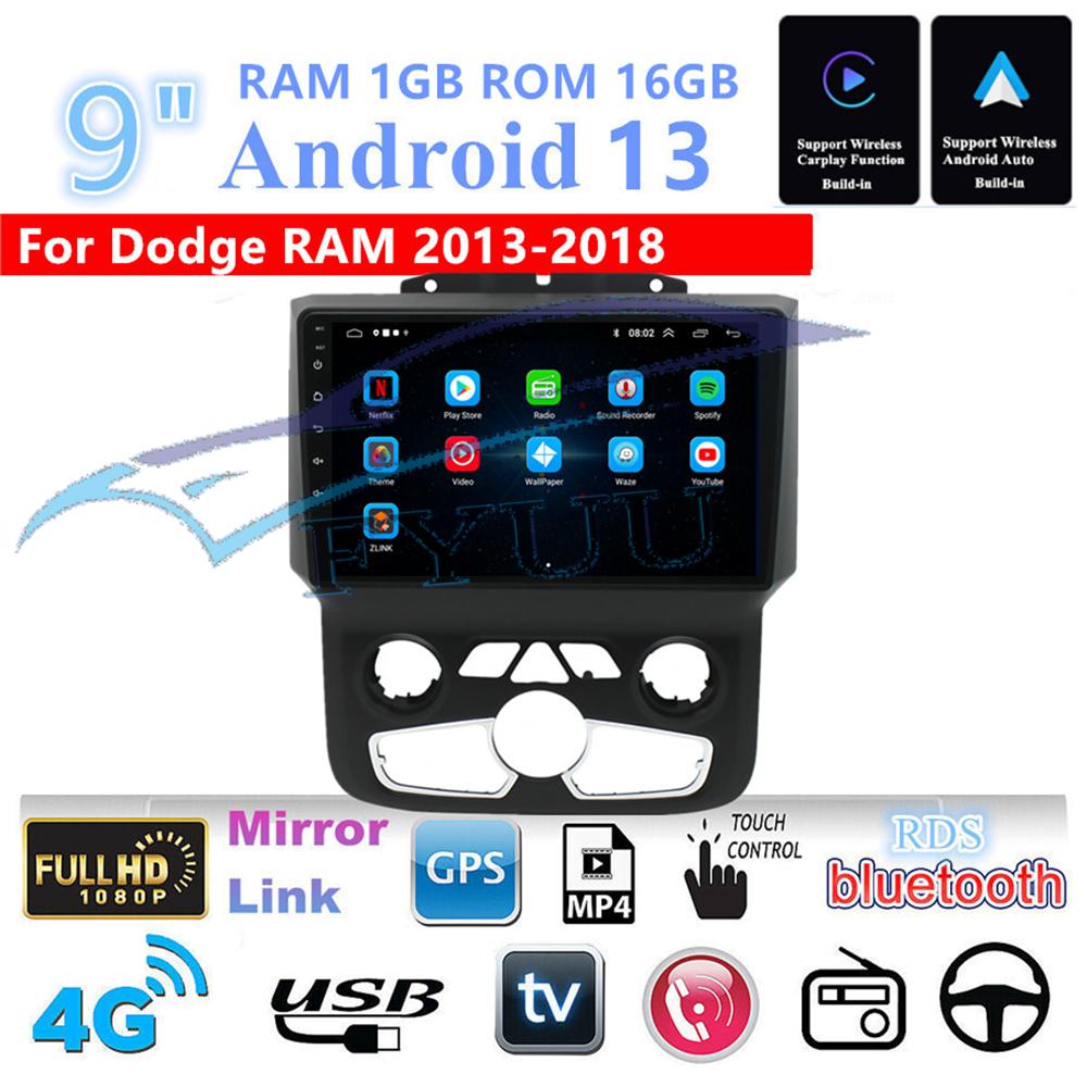 9'' Android 13 1+16GB Car Stereo Radio GPS For Dodge RAM 1500 2013-2018 AUTO AC