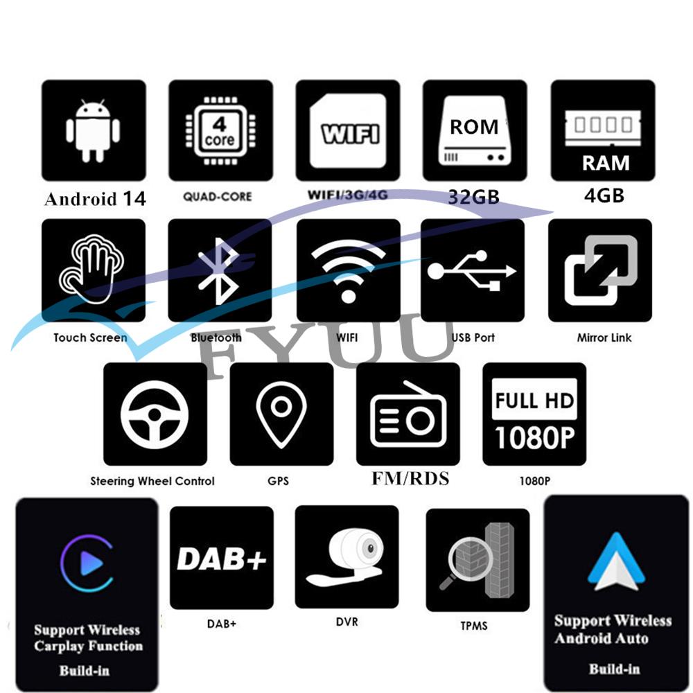 | Support Carplay/Android Auto | -Build-In Support WIFI Wireless & USB Wired Carplay And Android Auto. |