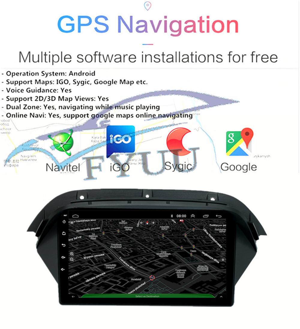 GPS | - Operation System: Android 12 - Support Maps: IGO, Sygic, Google Map etc. - Voice Guidance: Yes - Support 2D/3D Map Views: Yes - Dual Zone: Yes, navigating while music playing - Online Navi: Yes, support google maps online navigating |