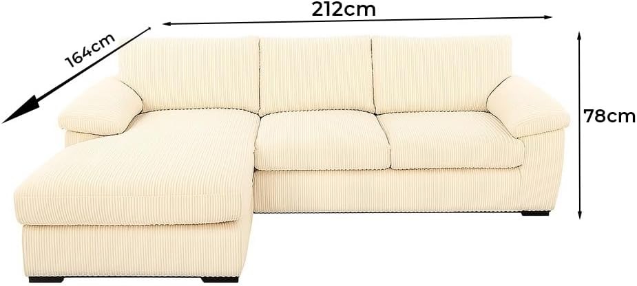 Amalfi jumbo cord Corner Sofa – 2-Part Set (212cm x 164cm) – Perfect for Your Living Room!