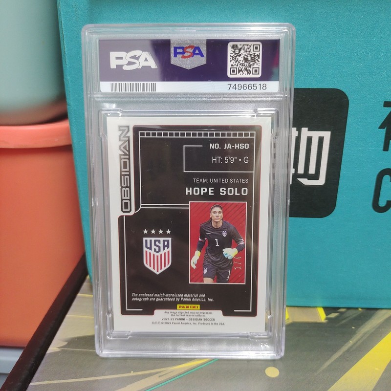 Hope Solo 2021-22 Panini Obsidian Red Patch Auto 1/4 Jersey Number Psa 9/10 USA