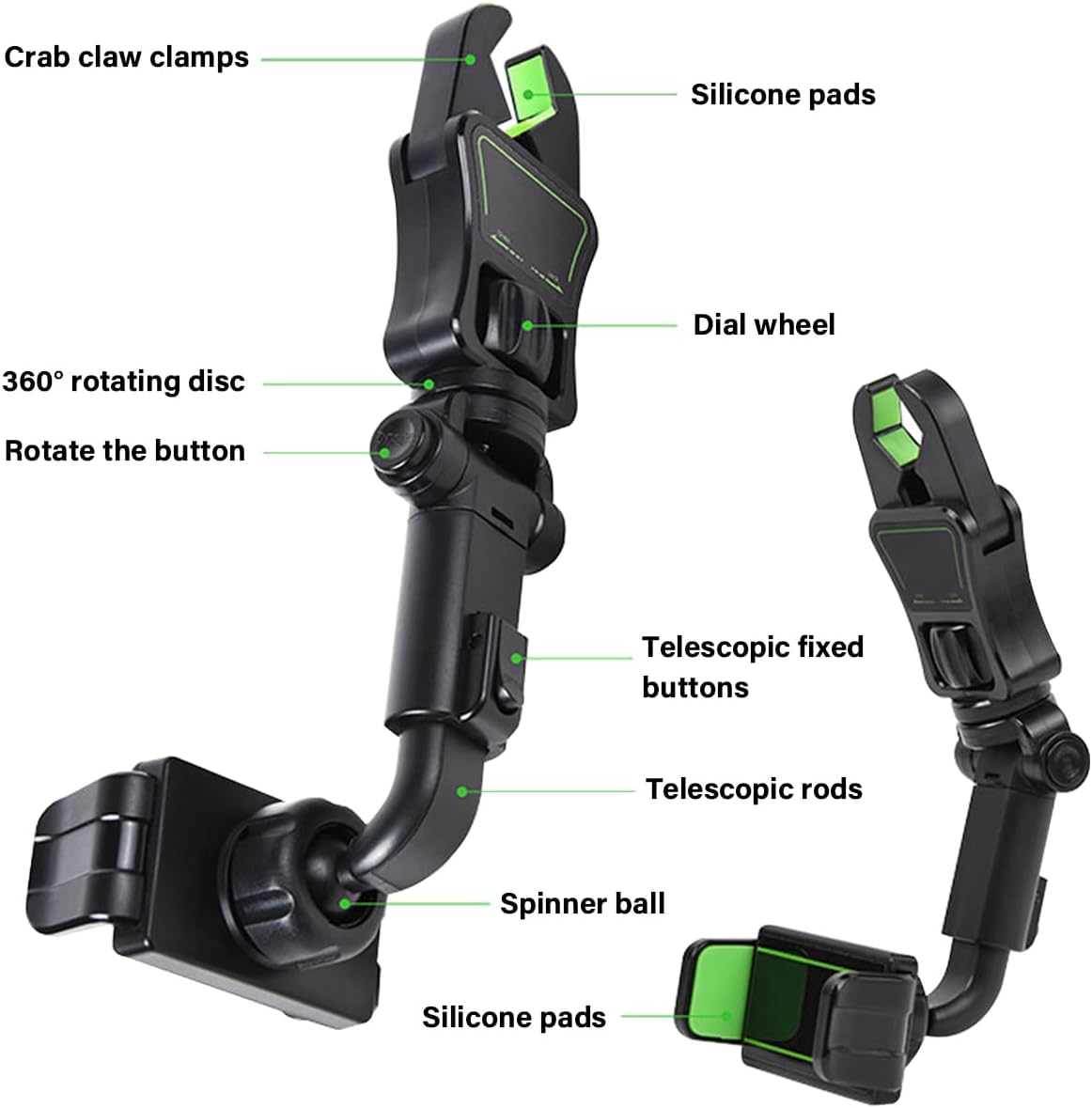 With a dial turntable, the crab clip clamping distance can be expanded from 14mm to 30mm, it can be mounted on the rearview mirror or car seat headrest;