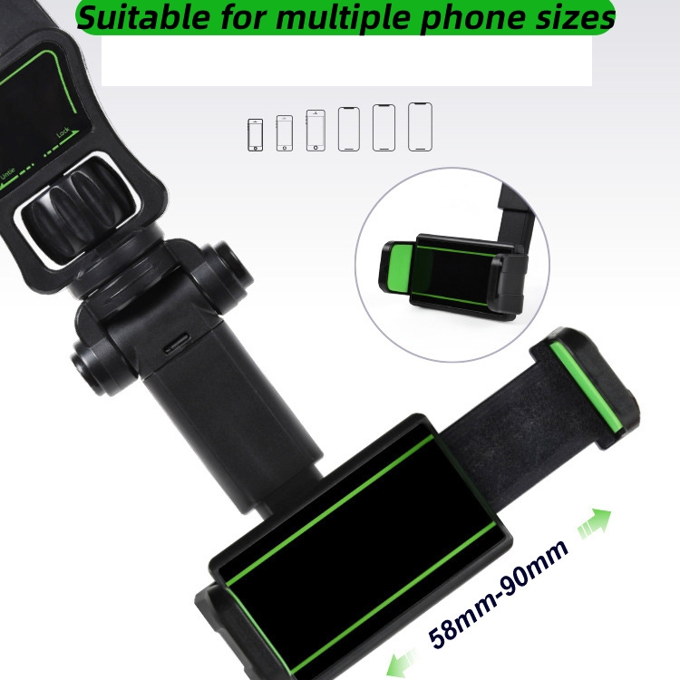 the cell phone holder is equipped with a strong spring that can be stretched from 58mm to 90mm, designed to fit most smartphones.