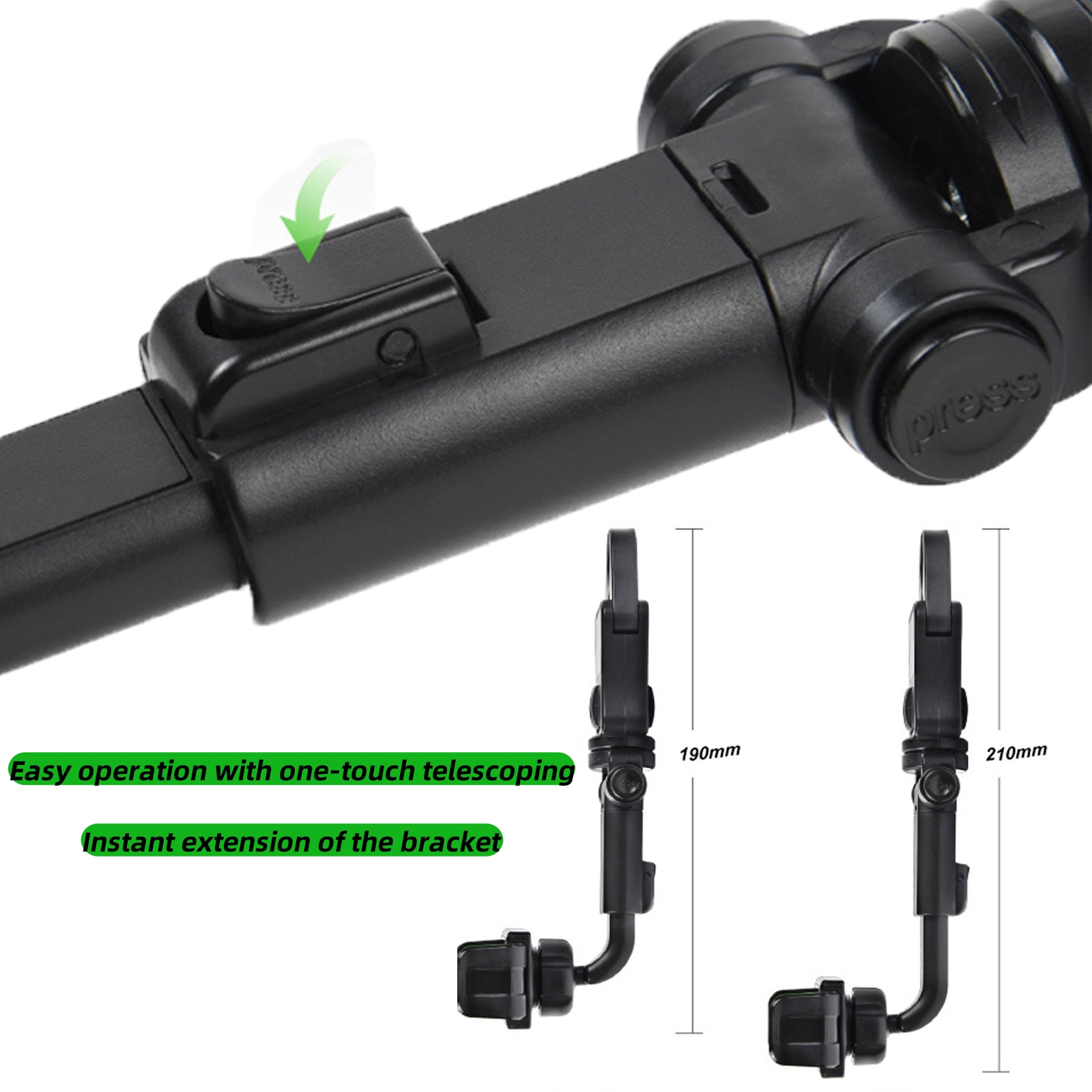 With push-button telescoping, the holder arm is instantly extended and can be adjusted without obstructing the view.