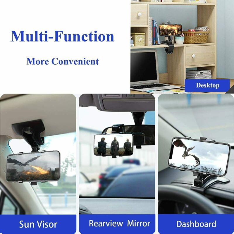 【One Car Holder For Multiple Purposes】This clip car mount more convenient, can be used in car dashboard, sun visor, rearview mirror. Multiple purposes can provide you with more convenience and more use needs in the car.