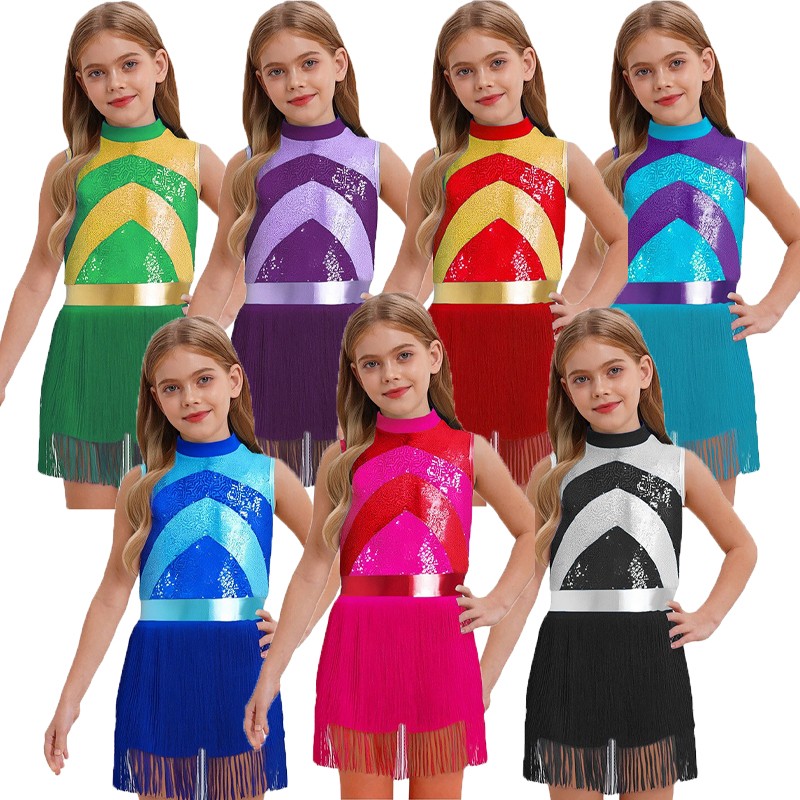 Made from a blend of polyester and spandex, it offers flexibility and comfort, allowing girls to move freely during performances or parties.