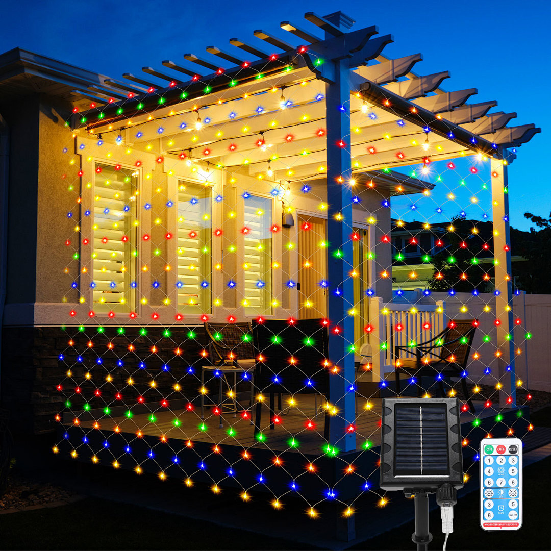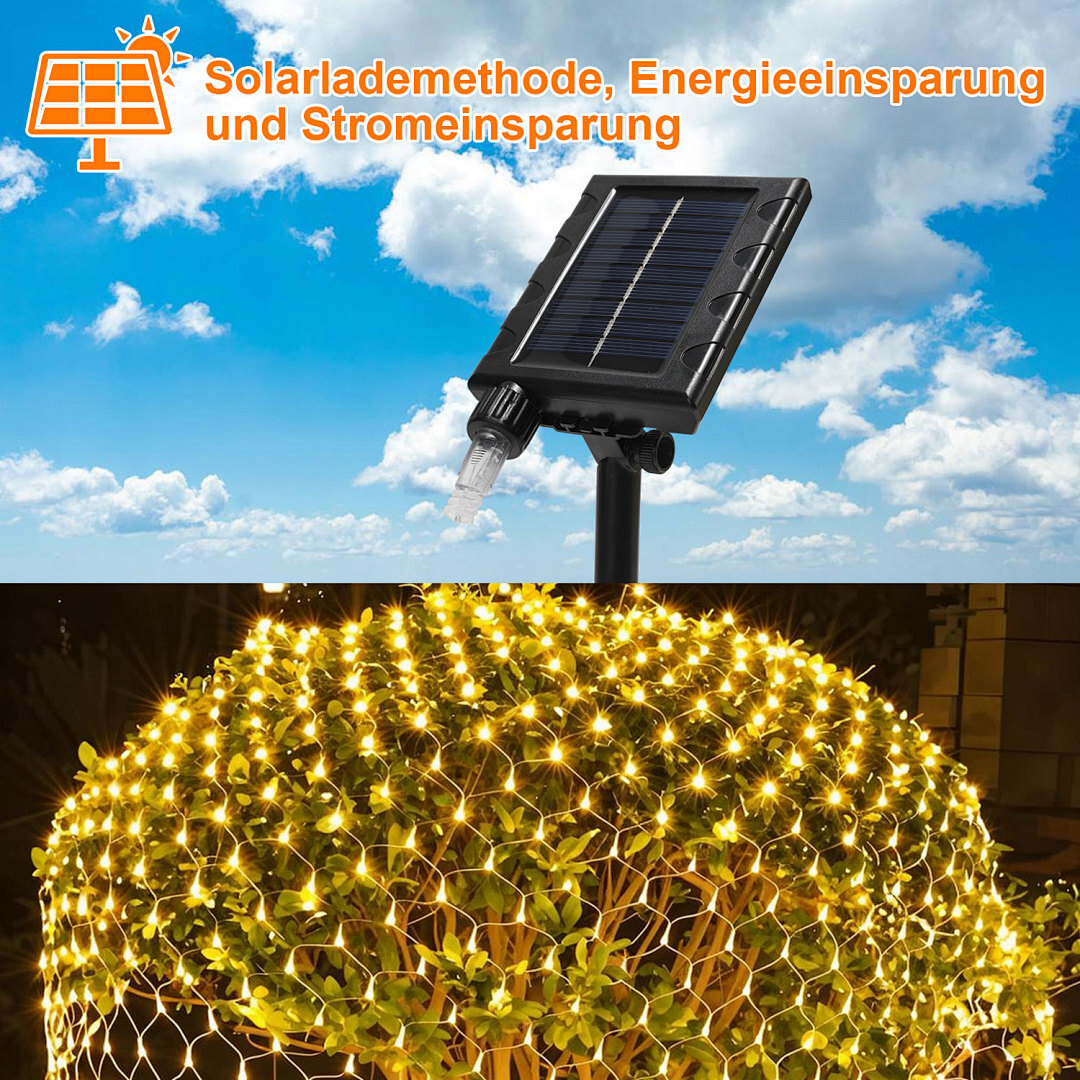 Das Solar Lichternetz bietet 8 Beleuchtungsmodi, 4 Helligkeitsstufen und praktische Timer (3/5/8 Std.).
