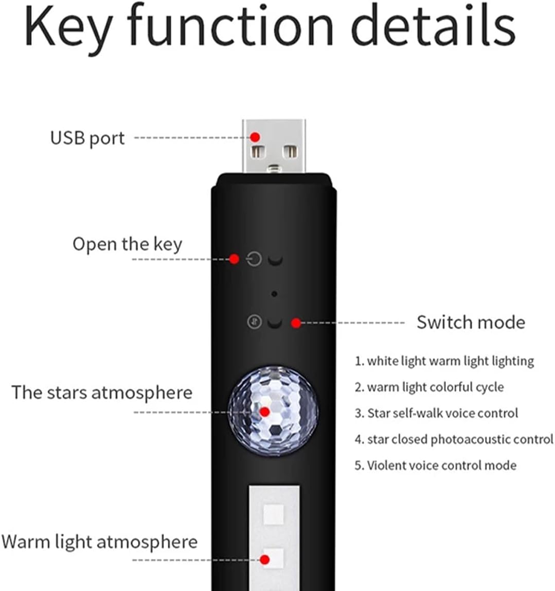 Our wireless car ambient lights allow easy adjustment of light color, brightness, and music modes. Switch modes as needed. Wireless functionality simplifies installation and removal without installation errors.