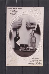 AUSTRALIA, BOTTLE & SODA WATER BOTTLE, GLASSES. c1910 Beagles, Sydney, ppc., unused.