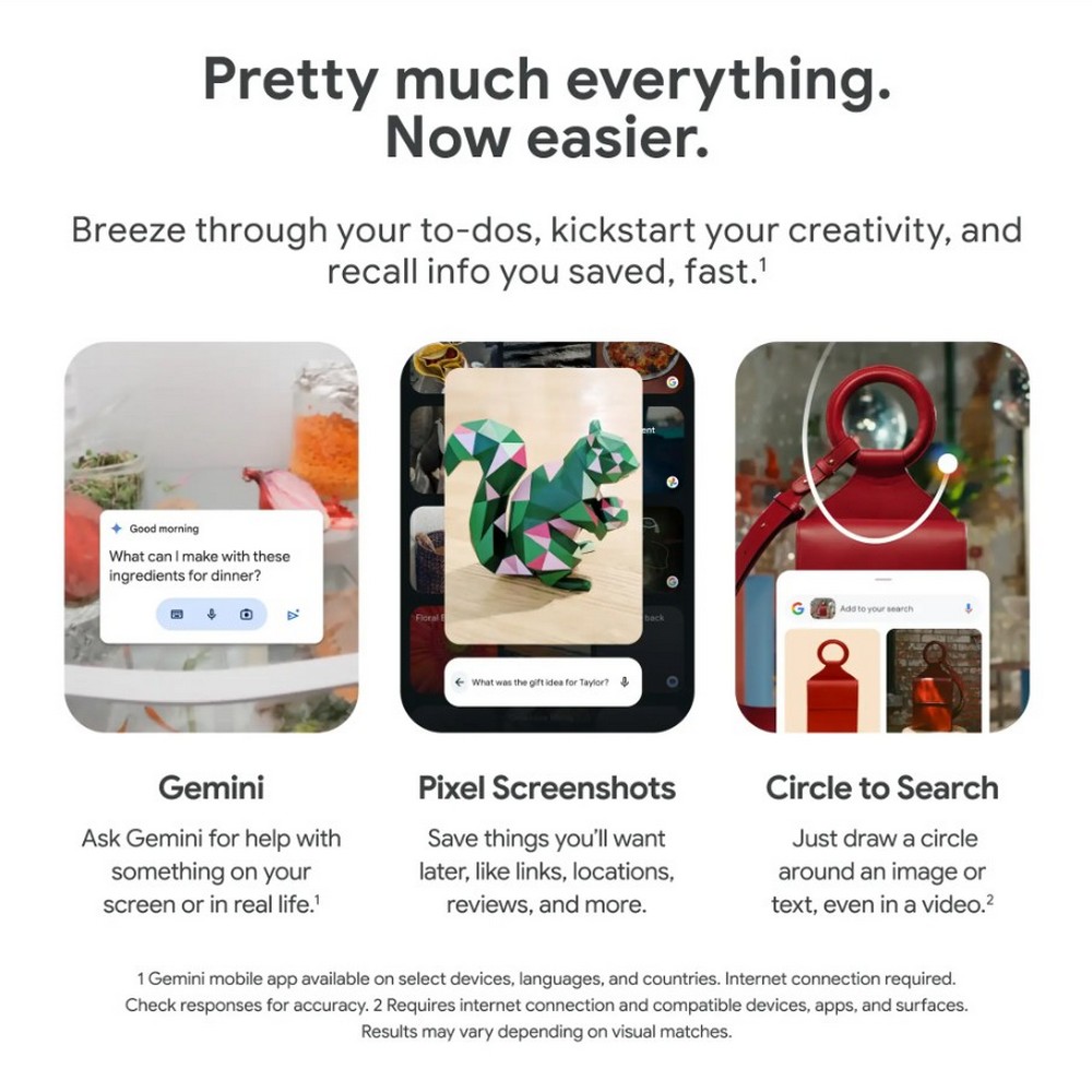 Meet Pixel 9 with Gemini. Engineered by Google, Pixel gets the best of Google’s AI first. So you can take amazing photos, make edits like magic, and get things done even easier. Pixel can protect against spam and other threats. It helps you in an emergency. And it’s built to last.