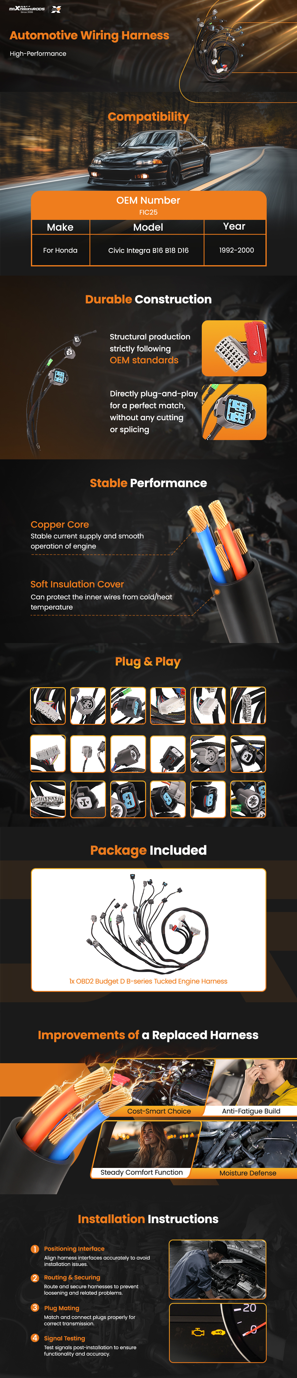 【Easy Installation】 The engine wiring harness is a direct replacement for older parts. Comes with all connectors and complete wiring harness. Plug and play, the efficient transmission of the wiring harness ensures safe driving