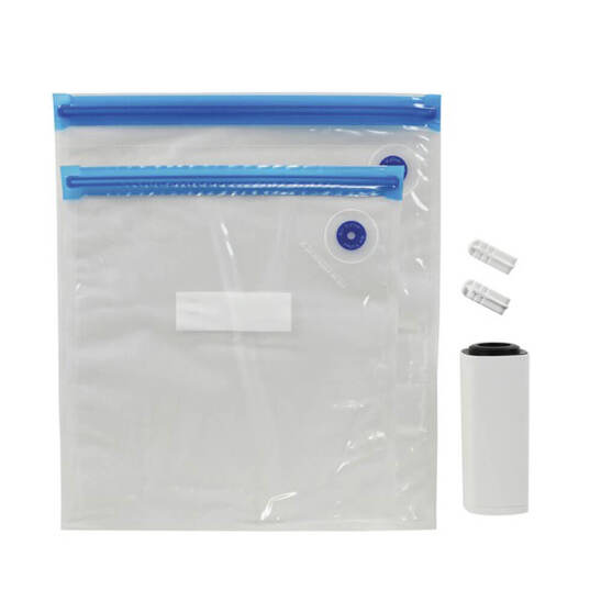 If you own a 3D printer, it is important to keep any unused filament dry to ensure a better build quality of your prints. Many filament types are hygroscopic which means they can draw in moisture from the air. Any moisture can lead to stringing, air bubbles, poor bed adhesion, etc. This mini vacuum pump provides an easy and affordable way to keep your printer filament dry. Simply insert your filament into one of the 6 bags provided, seal the bag, and then draw out the air by placing the pump over the bag's air valve and pressing the start/stop button. The bags can also be used to keep food fresher for longer. 4 x AA batteries required (not included). Supplied with 6 bags in 2 different sizes: 3pcs 30x34cm, 3pcs 26x34cm