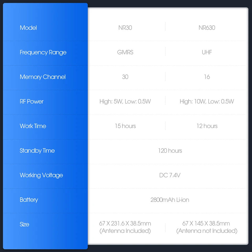 The walkie talkie can stay in the 1-meter water for 30 minutes and be used normally with the IP67 waterproof.