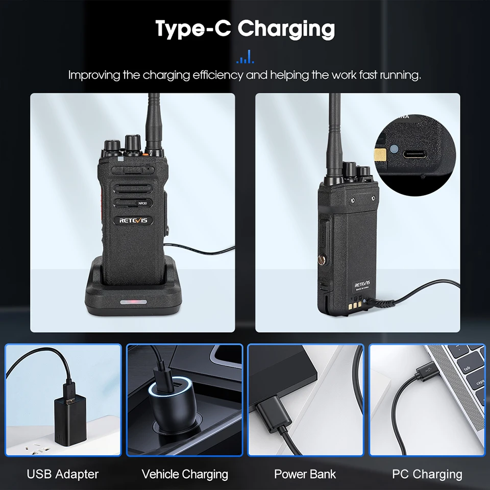 Using Type-C charging, it is convenient to recharge your walkie talkie in the company or on the road.
