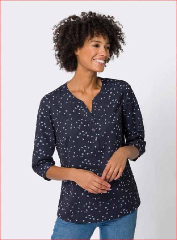 EUR 5,78Bluse blau Damen Schlupfbluse mit Herzchen-Dessin marine-ecru