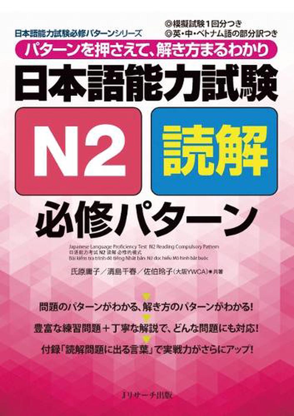 Description Japanese-Language Proficiency Test N2: Essential Reading Comprehension PatternsThis is a complete preparation guide for N2 reading comprehension, acting both as a textbook and a workbook.It allows you to effectively build your language abilities from the foundation up while also gaining the test-taking ability needed to pass your exam. In addition to being used as part of direct class instruction, it can also fit in many other kinds of long- and short-term study plans, whether in the form of self-study or homework.This book is broadly made up of three parts. Part 1, Foundation, is split into Chapter 1: Short Sentences / Medium Sentences and Chapter 2: Long Sentences. In these, you will train to build a foundation for comprehending texts across a variety of themes.Part 2, Test Preparation, provides a thorough analysis of five reading comprehension question formats while also providing test-taking practice. In Chapter 1, Preparation, you will solidify your test-taking foundations by learning how to perform checks and better comprehending sentence-ending expressions. In Chapter 2, Test Practice, you will understand strategic test-taking points through practice that follows the format of an actual test. To finish off your learning, Part 3, Practice Test, will provide a test of your abilities.— N2 … "'""—"N2…–— – – '""–…PART1 ––' –…– PART2–5 ––– " " PART3 "Giaos trình 'c hiu trng tâm N2 kì thi nng lc ting Nhtây là cu'n sách ôn thi toàn din v "c hiu N2" gp c "giáo trình" và "bài luyn tp".Mang li cho ngi hc hai hiu qu là hc t c bn và trau d"i kin thc cn khi thi c tin gn hn 'ích thi '—. Ngoài hng dn trc tip trên lp, ngi hc có th kt hp vi k hoch dài hn hay ngn hn ca bn thân ' t hc hoc ' làm bài tp.Cu'n sách này g'm 3 phn chính. Trc tiên là PART1 ", Phn c bn",'c chia thành chng 1 "câu ngn, câu va" và chng 2 "câu dài", ' luyn c bn 'c hiu 'on vn vi nhiu ' tài 'a dng. PART2 "–, phn luyn tp", ngc hc s luyn tp thc t vi 5 dng bài 'c hiu. Chng 1 "chun b chin lc", s cng c' nn c bn ' nâng cao nng lc thi vi bài "cách kim tra" hay "tng hp các cách nói cu'i câu", còn chng 2 "luyn tp thc t", thông qua các bài luyn tp gi'ng vi ' thi thc t s giúp ngi hc nm 'c 'im trng yu.Cu'i cùng, s ôn tp li toàn b PART3 """ bài thi th" ' kim tra trình '.-- (5/1/2020 12:00:00 AM)