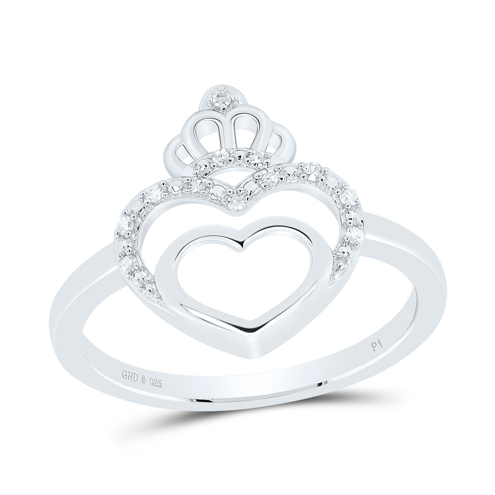 (1.95 gr. of 925 Sterling Silver | Total Carat Weight: 0.05 ct. t.w. of White Diamonds | Width: 20mm | Clarity: I1 - I2 | Color: H - I | Women's Round Cut Diamond Double Heart & Crown Stackable Band Ring)