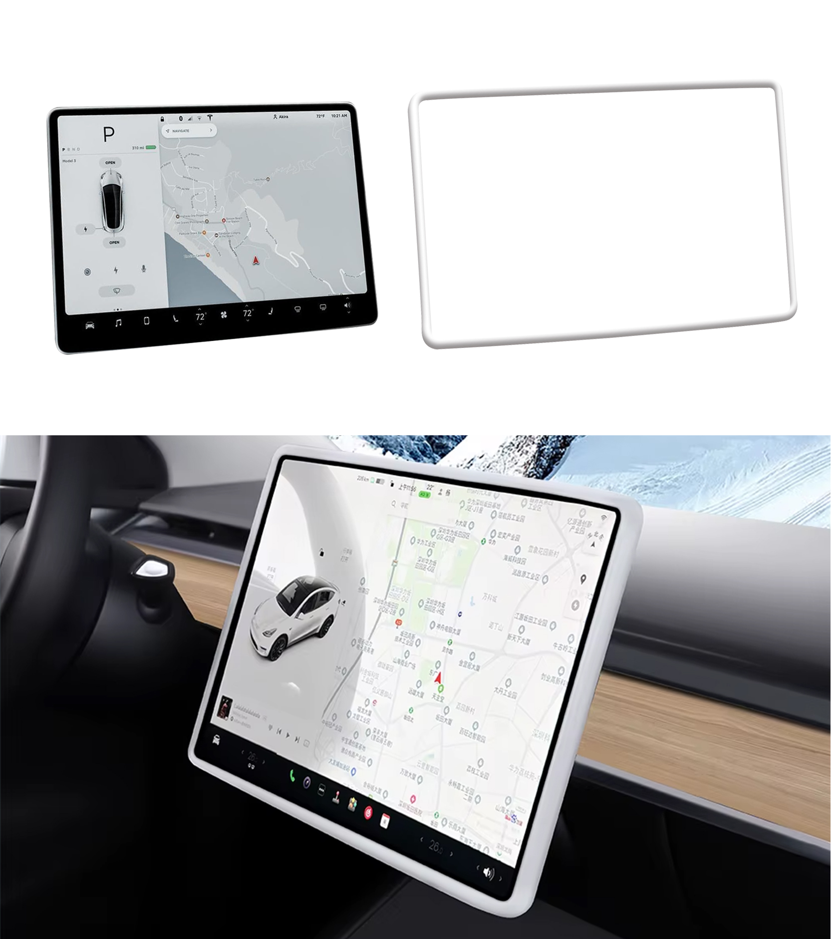 White Screen Protector Frame To Tesla 2017-2023 3 Exc Highland, 2020-2025 Y