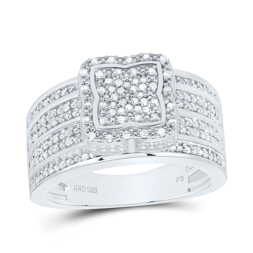 (6.53 gr. of 925 Sterling Silver | Total Carat Weight: 0.50 ct. t.w. of White Diamonds | Width: 21mm | Clarity: I1 - I2 | Color: H - I | Women's Round Cut Diamond 3D Flower Stackable Cocktail Ring)
