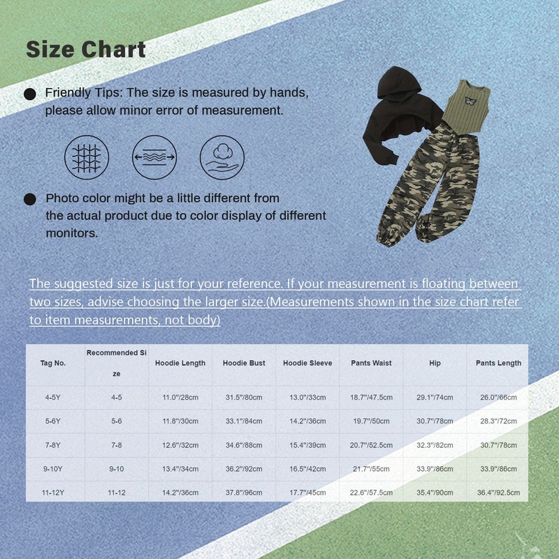 | Tag No. | Recommended Size | Hoodie Length | Hoodie Bust | Hoodie Sleeve | Pants Waist | Hip | Pants Length |