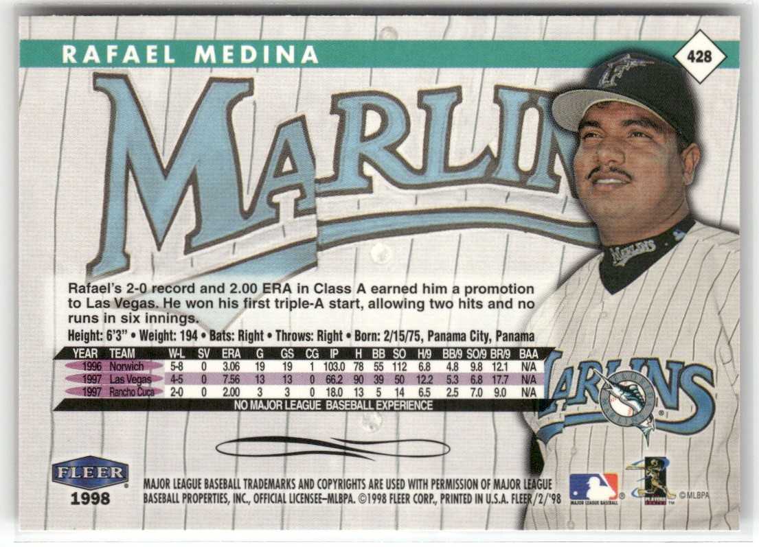 | 1998 FLEER TRADITION RAFAEL MEDINA FLORIDA MARLINS RC #428 |
