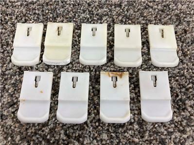 Up for grabs is set of (9) rocker molding clips. The part number is 20687369. They will fit 1990-1992 Fleetwood Brougham models. These were used on the large plastic rocker moldings, found on the doors, rear quarters, and front fenders. There were different clips used (in addition to these) on the ends of some of those moldings, so make sure these are what you need. They will not fit the small dog leg moldings in front of the rear wheel wells. These clips are all in good shape, nice and strong with no cracks or damage. These are genuine GM parts. You will receive the exact ones pictured. Satisfaction guaranteed!