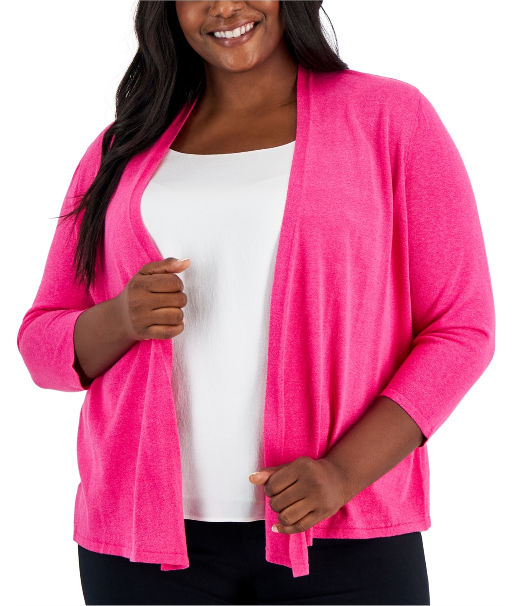 Kasper Womens Solid Cardigan Sweater, brghtpink, Plus Size, 3X