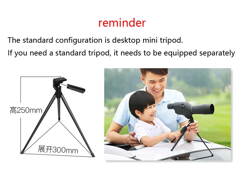 - A tripod provides you a more stable observation from any angles. A carry bag, eyepiece and lens protection covers, cleaning cloth make you more convenient to carry and maintain
