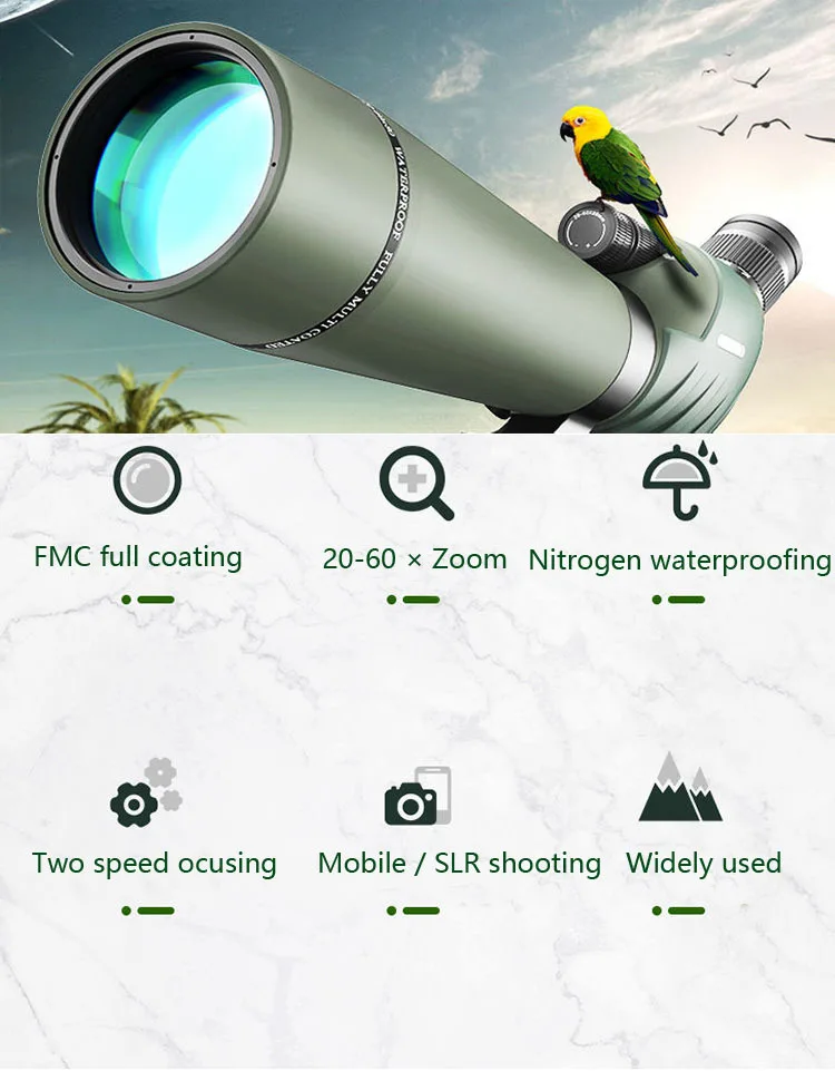 - Variable 20x to 60x magnification and dynamic lens focusing system - makes it easy to zoom in. Perfect for archery, bird watching, wildlife watching, hiking, camping, scenery, outdoor sporting, astronomical observation etc.