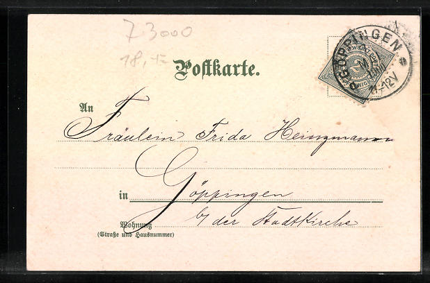 gelaufen 1900, Stempelspur, Eckknick re. unten, guter Zustand