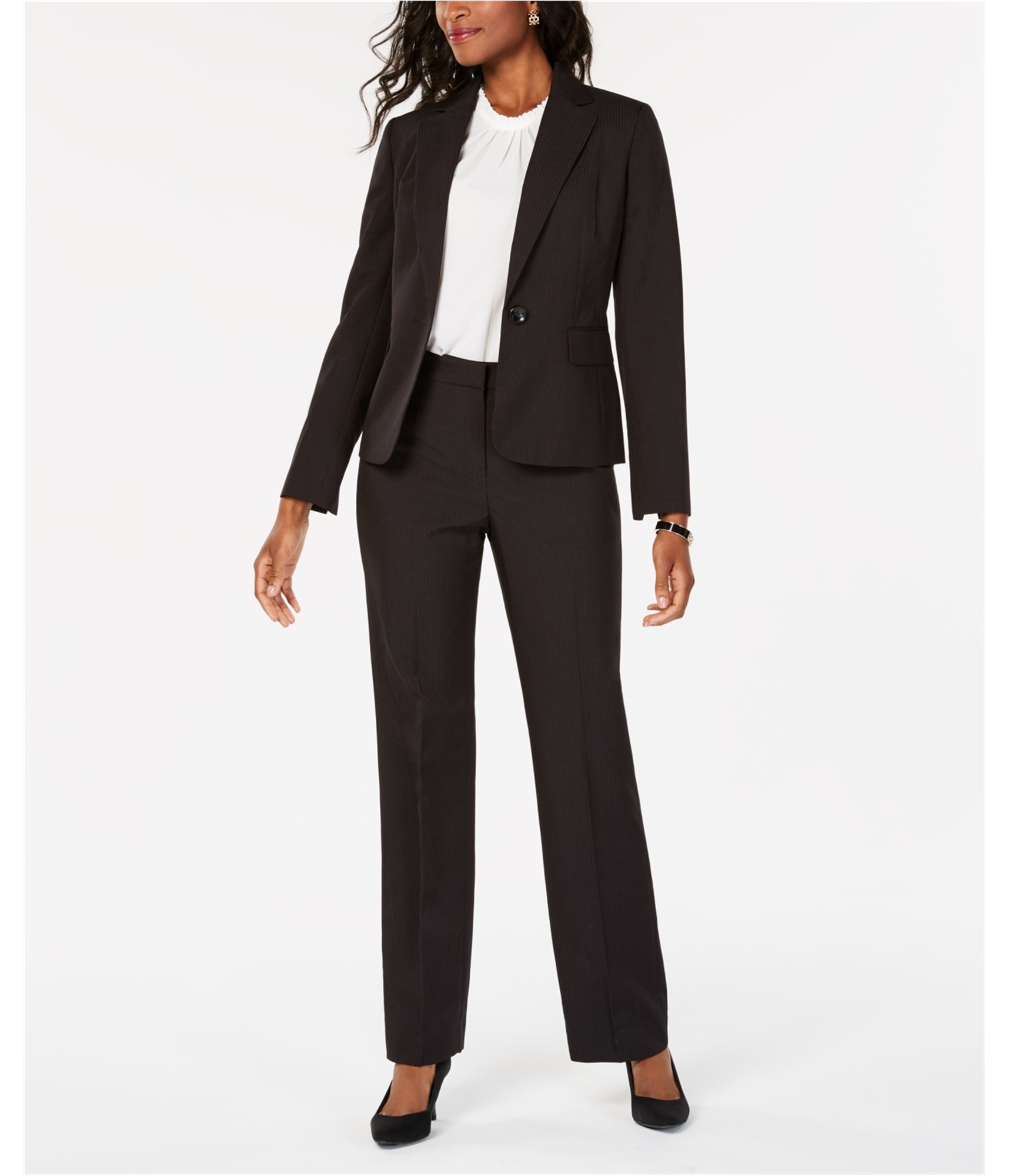 Le Suit Womens Pinstripe One Button Blazer Jacket, black, Petite, 2P