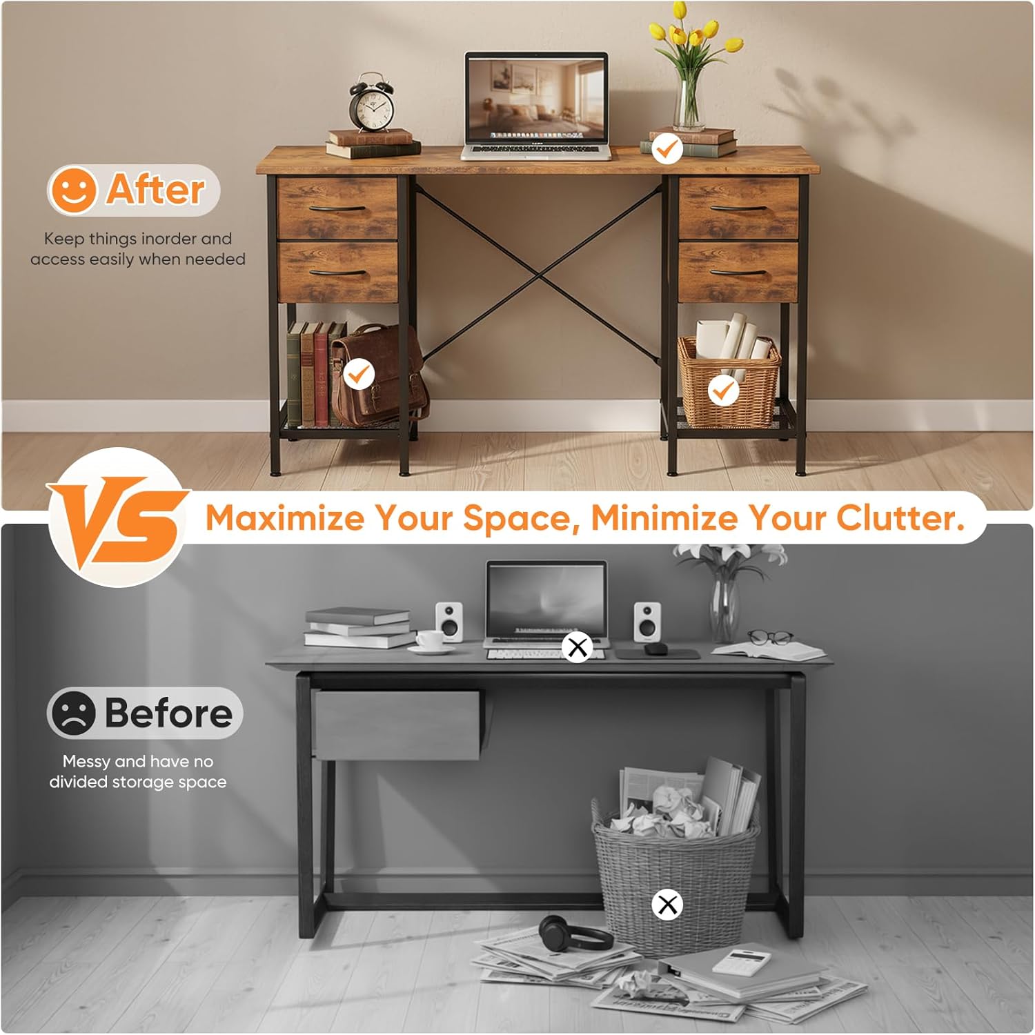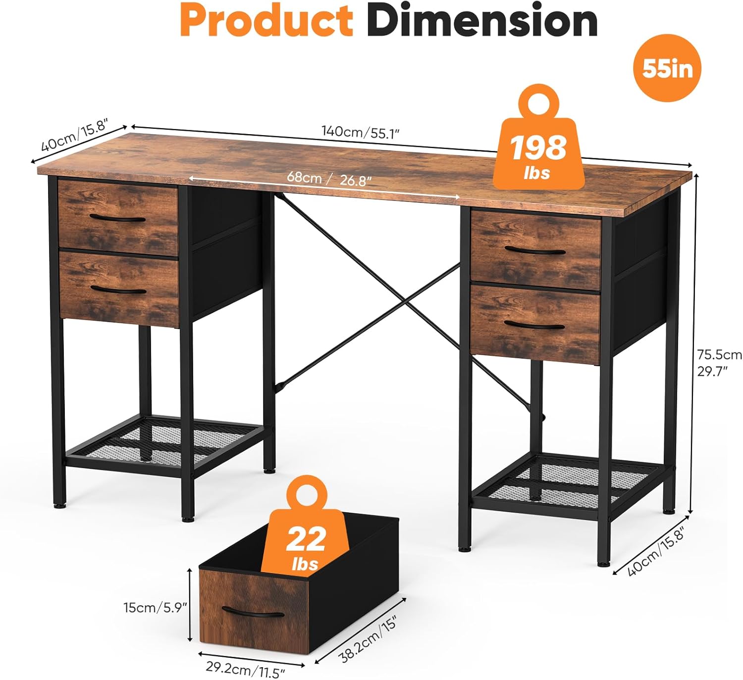 【Ample Storage】 This desk features 4 fabric drawers and 2 mesh shelves for unparalleled organization. It's your dedicated space for files, supplies, gadgets, and more—transforming any room into a clutter-free, functional office, bedroom, or study zone.