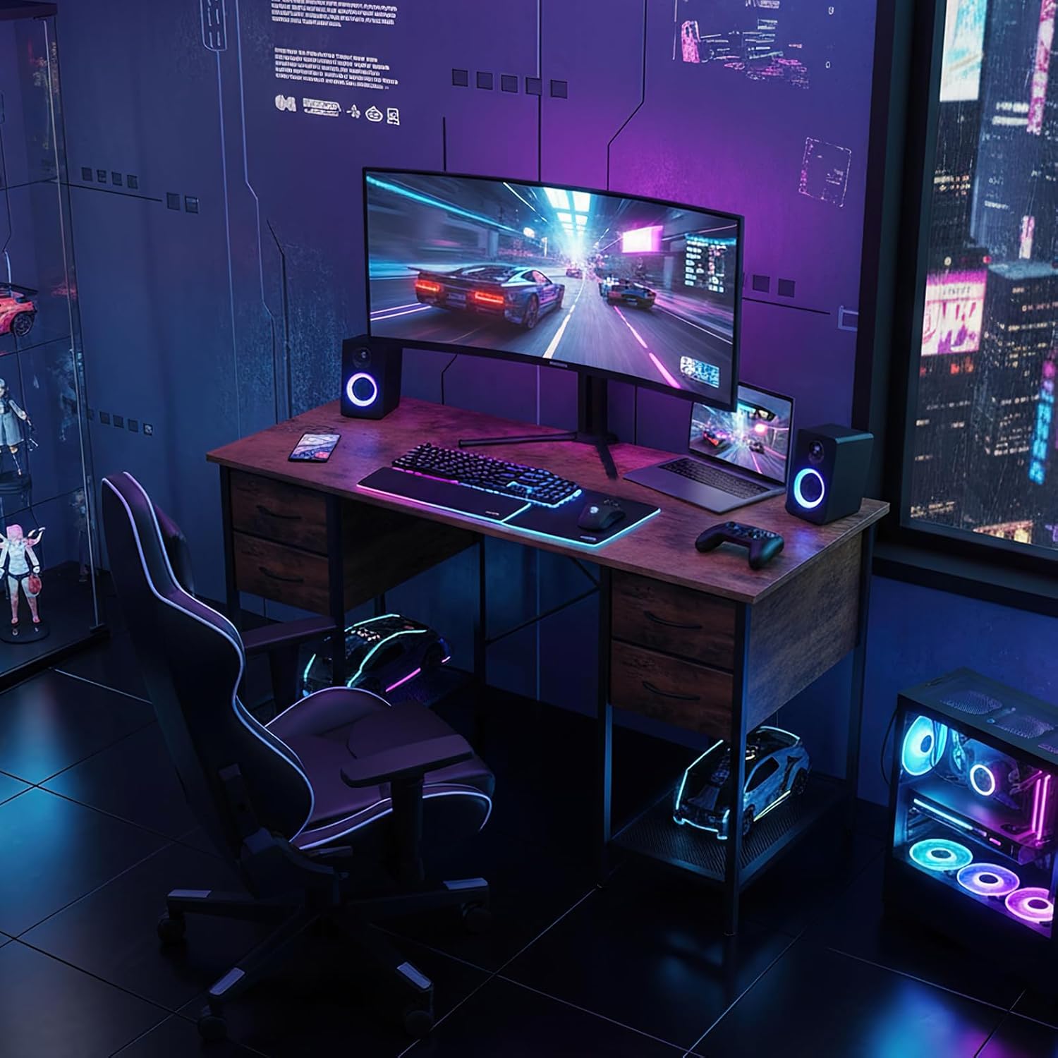 【Sturdy Frame with Adjustable Fee】Built with a robust metal frame and reinforced particleboard, this desk guarantees long-lasting stability. Four adjustable feet allow you to level the desk perfectly on uneven floors, providing a shake-free workspace for work, gaming, or study.