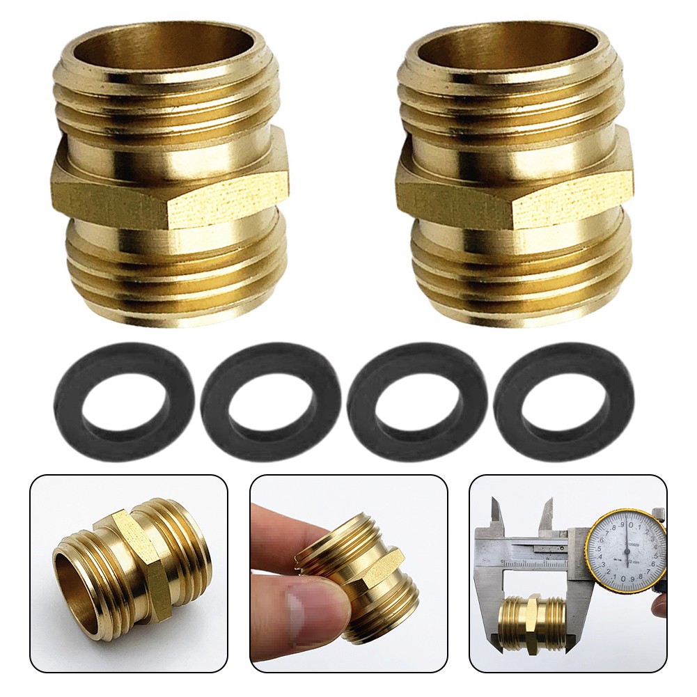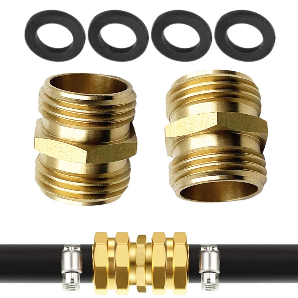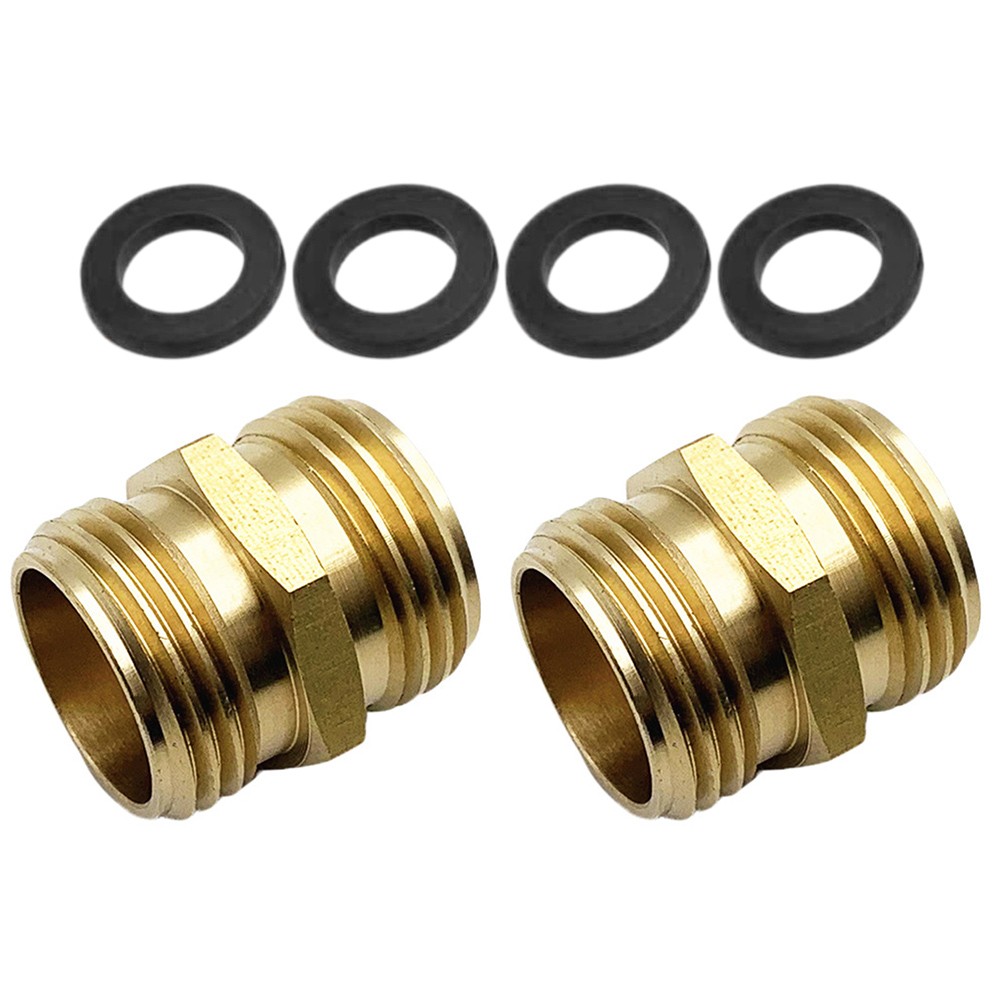 Brass Garden Hose Adapter Male To Male Quick Connector 2 Pack 3/4 Inch