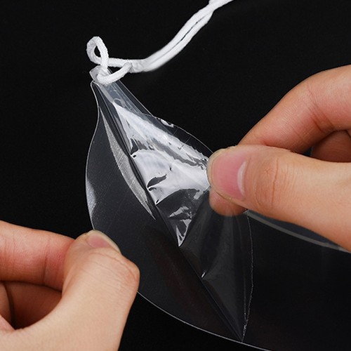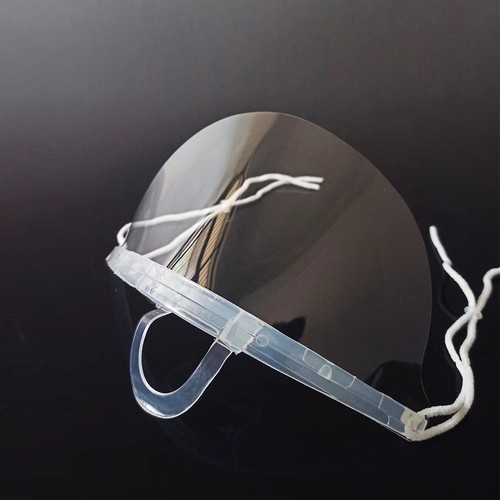 Instructions for use: Put the visor on the chin, hang the rubber band on the ear, adjust the position of the visor according to the size of your face, adjust the relaxation of the rubber band as much as possible, it will bemore comfortable to wear, you can cut the excess rubber band off. And the visor can be used repeatedly.
