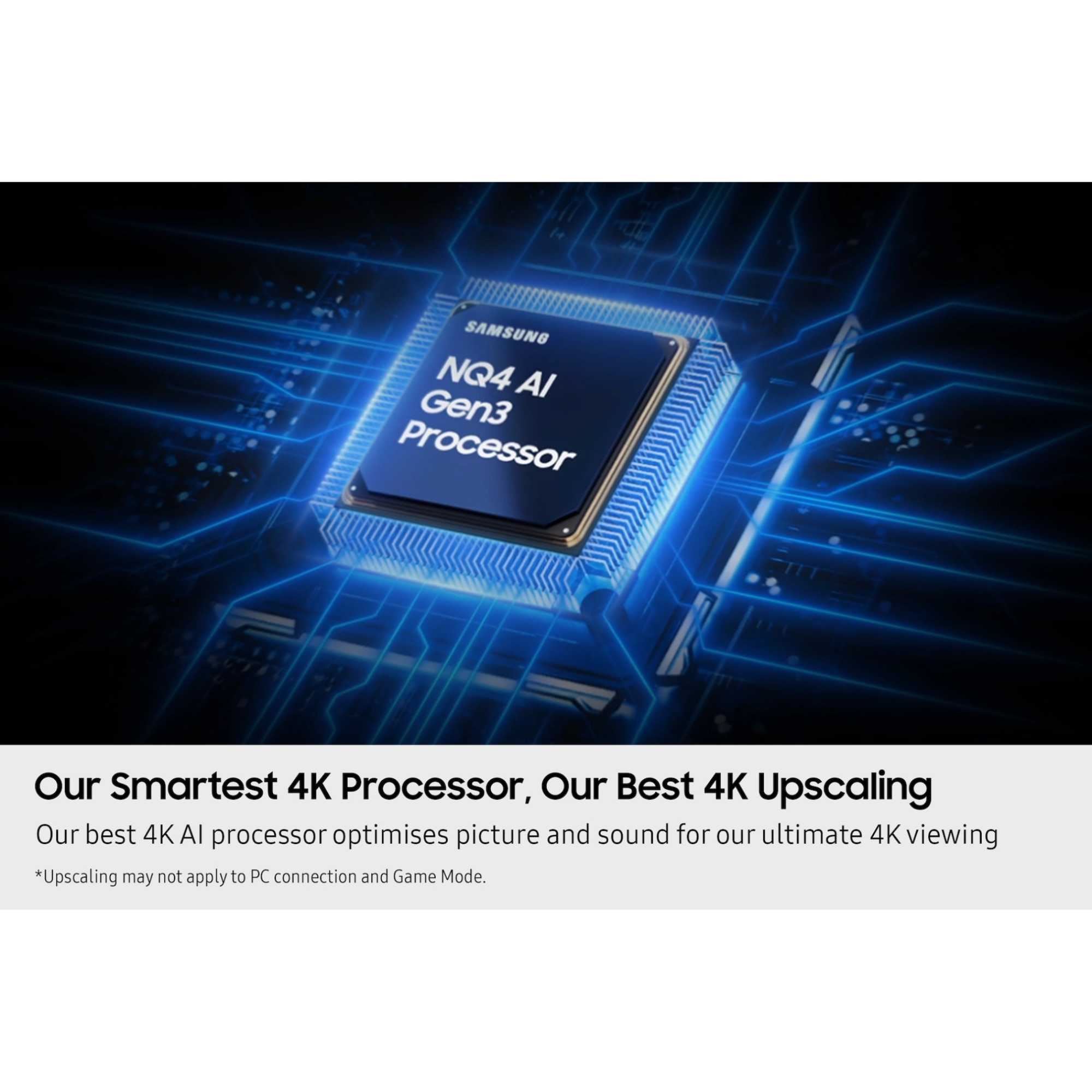 4K AI Upscaling Pro: Enjoy breathtaking clarity with 4K AI Upscaling Pro, powered by our best-ever 4K AI processor. Using advanced AI and 128 neural networks, your TV intelligently analyses and enhances every frame restoring lost detail and refining each pixel for exceptional 4K Ultra HD quality, no matter the original source. From live news to timeless classics, everything you watch is elevated to stunning detail and lifelike realism. Even if it wasnt filmed in 4K, you can still experience it as if it were with pin-sharp visuals and immersive depth that bring every scene to life.* *Upscaling may not apply to PC connection and Game Mode.