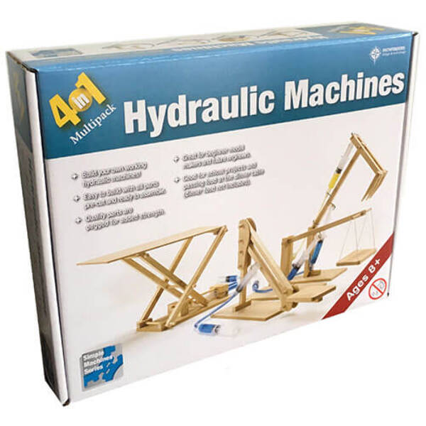 The four main Hydraulic Mini Machines are included in this pack. This kit includes the Cherry Picker, Excavator, Platform Lifter and Scissor Lift.