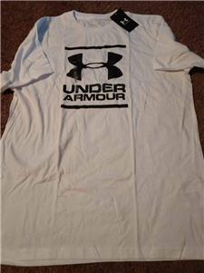NEW MENS UNDER ARMOUR WHITE T-SHIRT CREWNECK LOGO SHIRT SIZE XL