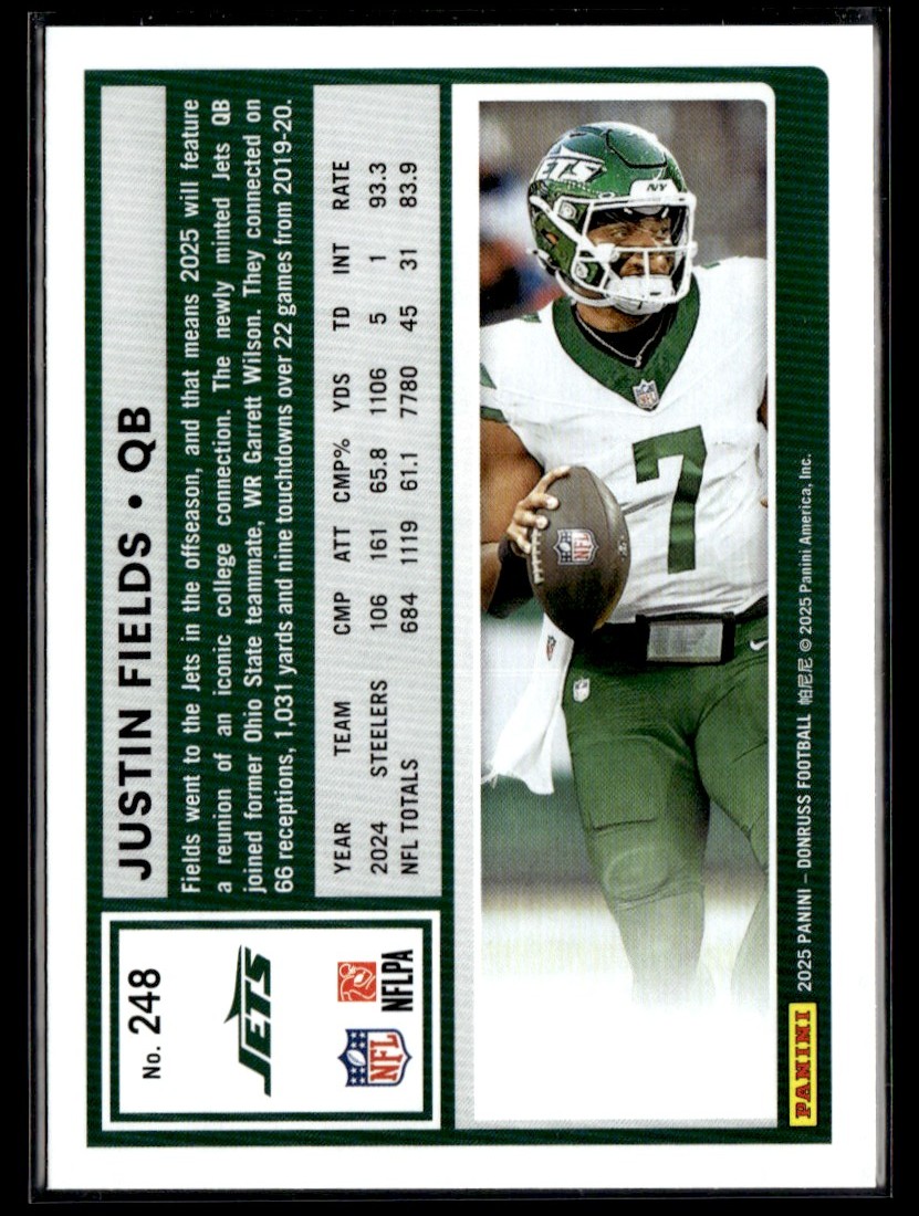 | 2025 DONRUSS JUSTIN FIELDS NEW YORK JETS #248 |