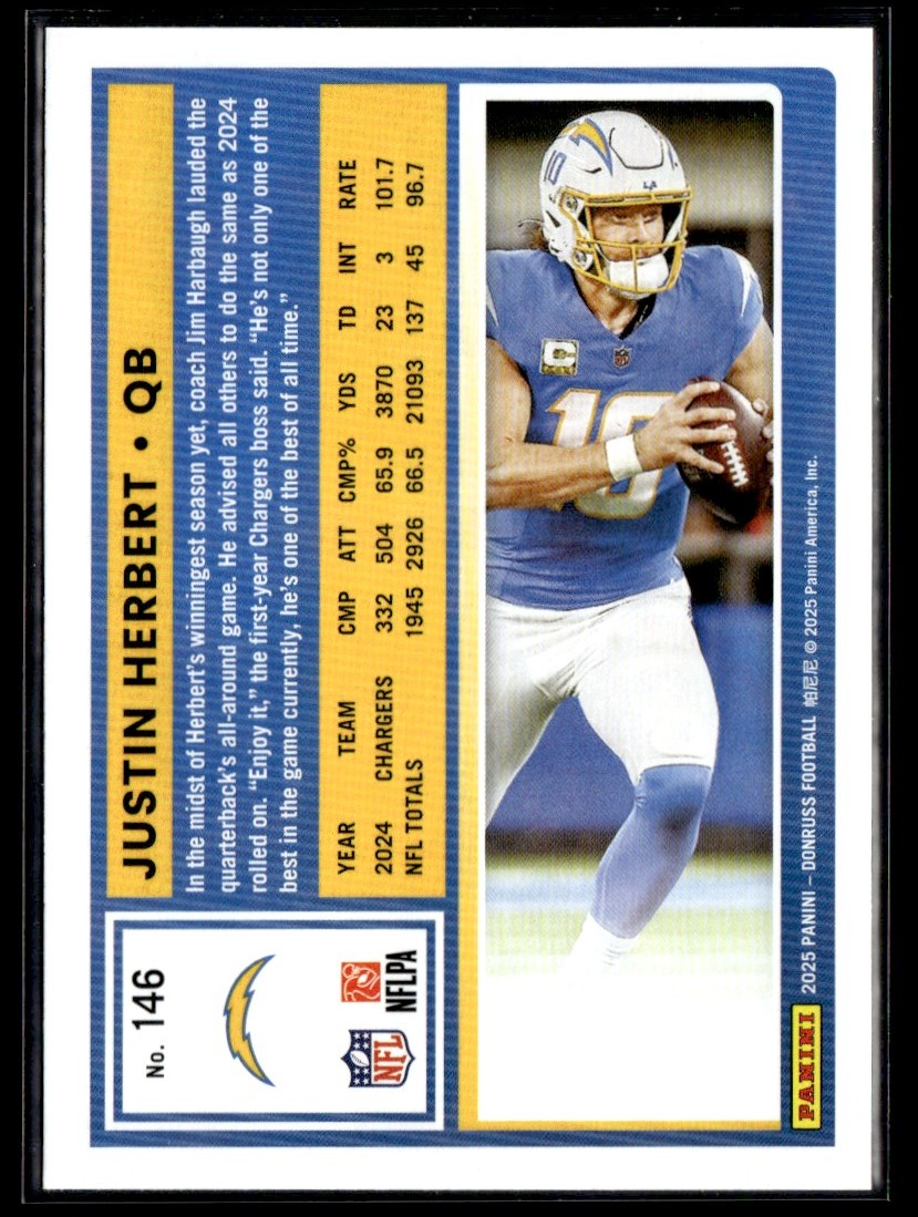 | 2025 DONRUSS JUSTIN HERBERT LOS ANGELES CHARGERS #146 |