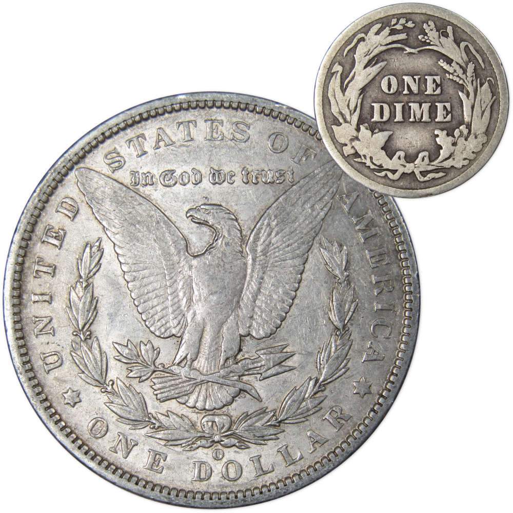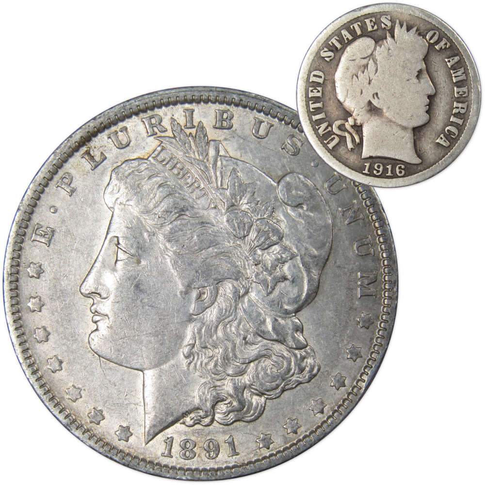 A genuine 1891 O Morgan Silver Dollar, in XF EF Extremely Fine Condition. Contains 90% Silver. Comes with a 1916 Barber Silver Dime, in G Good Condition. Contains 90% Silver