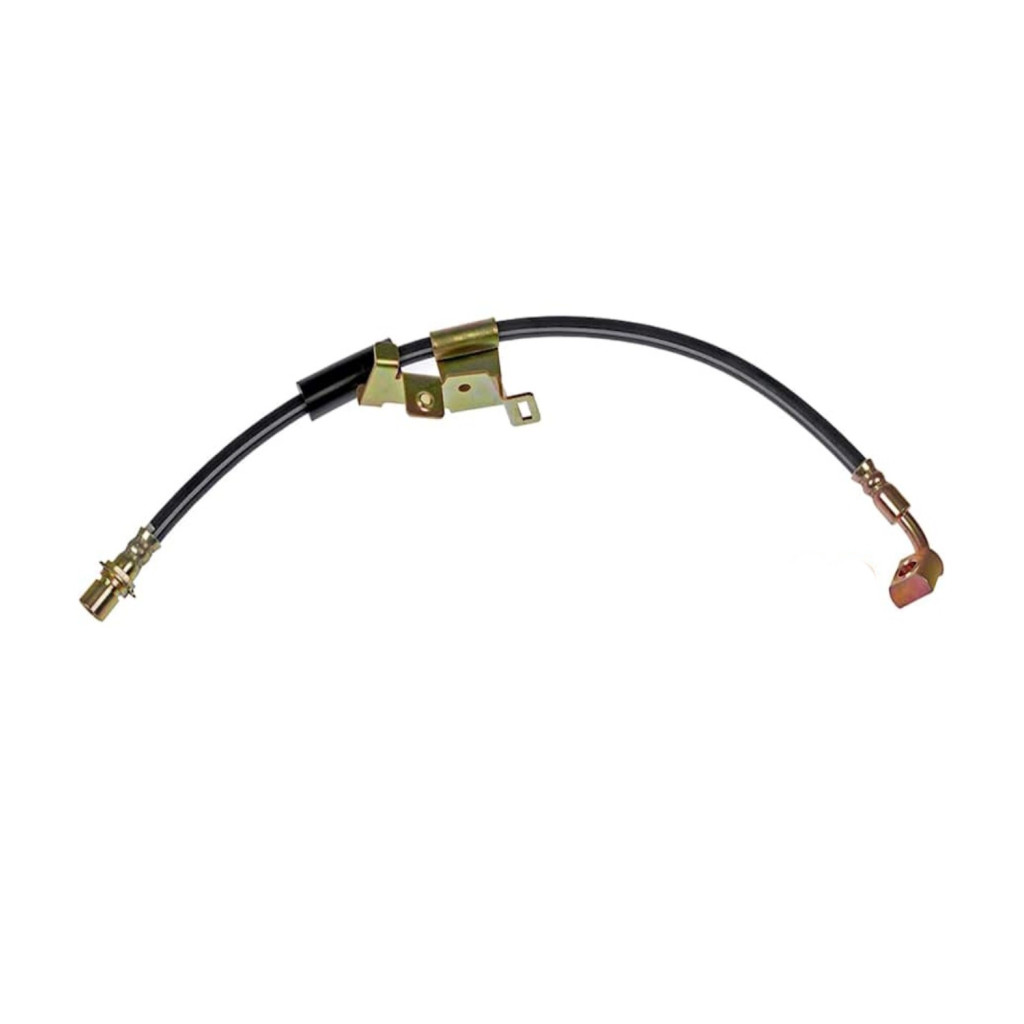 | | Detail Product Information | Product Info: - Part: Brake Hydraulic Hose - Bracket Material: Stamped Steel - Color: Black - Describe Type: Flexible Hose - Axis 1 Length: 19.88 inches - Bracket Included: Yes - DOT Approved: Yes - End 1 Fitting Material: Treated Steel - End 1 Fitting Type: Banjo - End 1 Thread Size: 10 millimeters - End 2 Fitting Inside Diameter: M12 By 1.0 - End 2 Fitting Material: Treated Steel - End 2 Fitting Type: Female - Gasket Or Seal Included: Yes - Hose Material: EPDM Rubber - Jacket Included: Yes - Outer Sleeve Material: Rubber - Overall Length: 20.75 inches - Package Contents: 1 Brake Hose; Gaskets