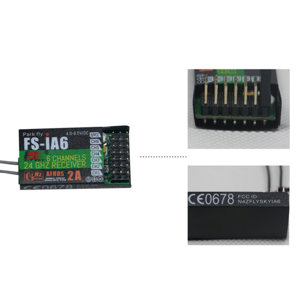 Specifications: Brand Name: for Flysky Item Name: FS-iA6 receiver Channels: 6 Frequency Range: 2.4-2.48GHz Number of Band: 160 Transmitting Power: not more than 20dBm Receiver Sensitivity: -105dBm Input Power: 4.0-6.5V DC Color: Black Size: 40.4*21.1*7.35mm/1.59*0.83*0.29 (not including cable length) Cable length: 180mm/7.09 Net Weight: 8g