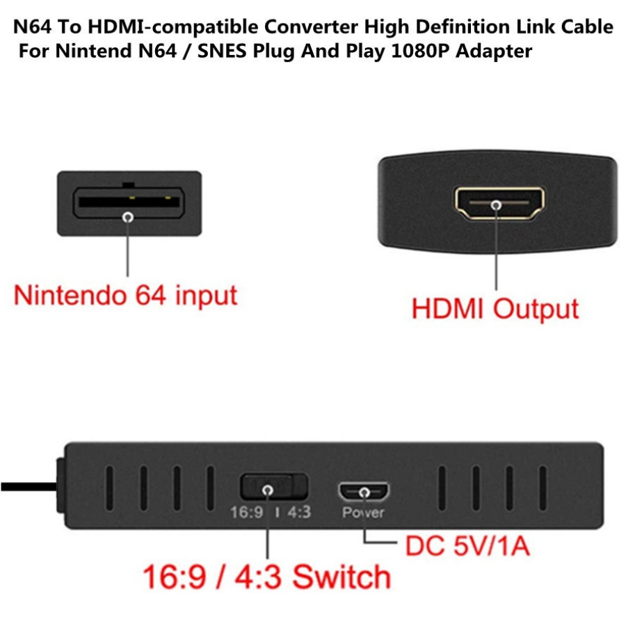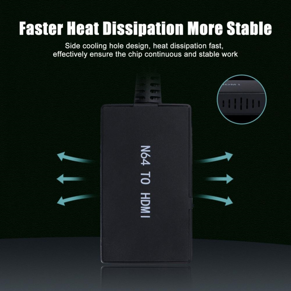 Features: Nintendo 64 to HDMI converter No need to install drivers, portable, flexible, and plug and play. Provide high-precision, color, resolution, and detail signal processing to restore the original game graphics. This Nintendo 64 to HDMI converter easily connects the Nintendo 64 console to the new HDMI TV input, eliminating cable confusion. Enjoy a portable and flexible gaming experience No driver installation required, plug and play. Provide high-precision, color, resolution, and detail signal processing. Supports NTSC3.58 and NTSC4.43 standard TV format input.