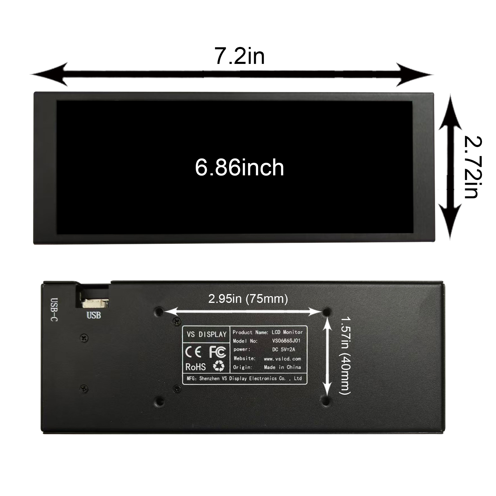 1× 6.86inch 1280x480 VS0686SJ01LCD Monitor