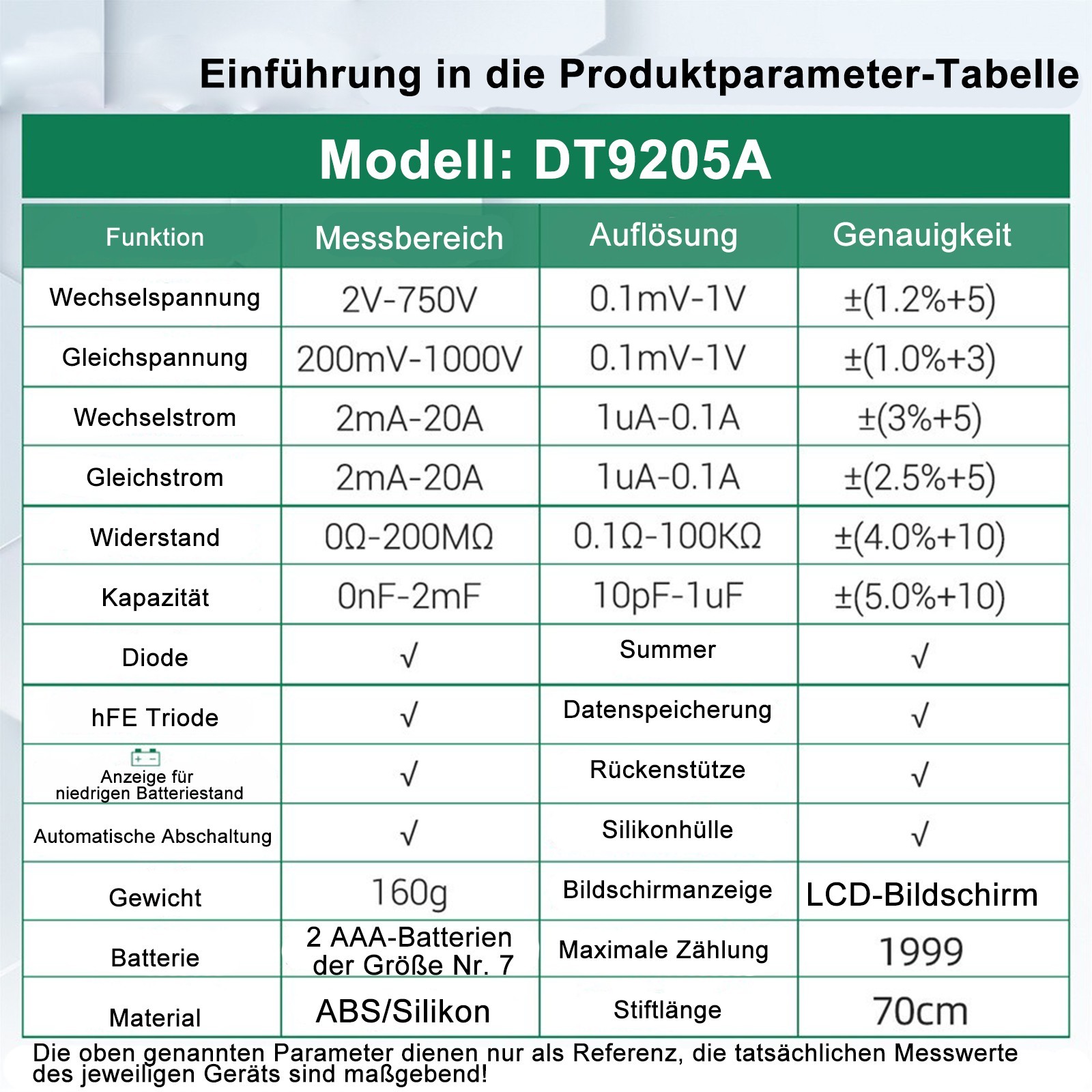 Paket beinhaltet: 1 x Digitalmultimeter 2 x Messtipps