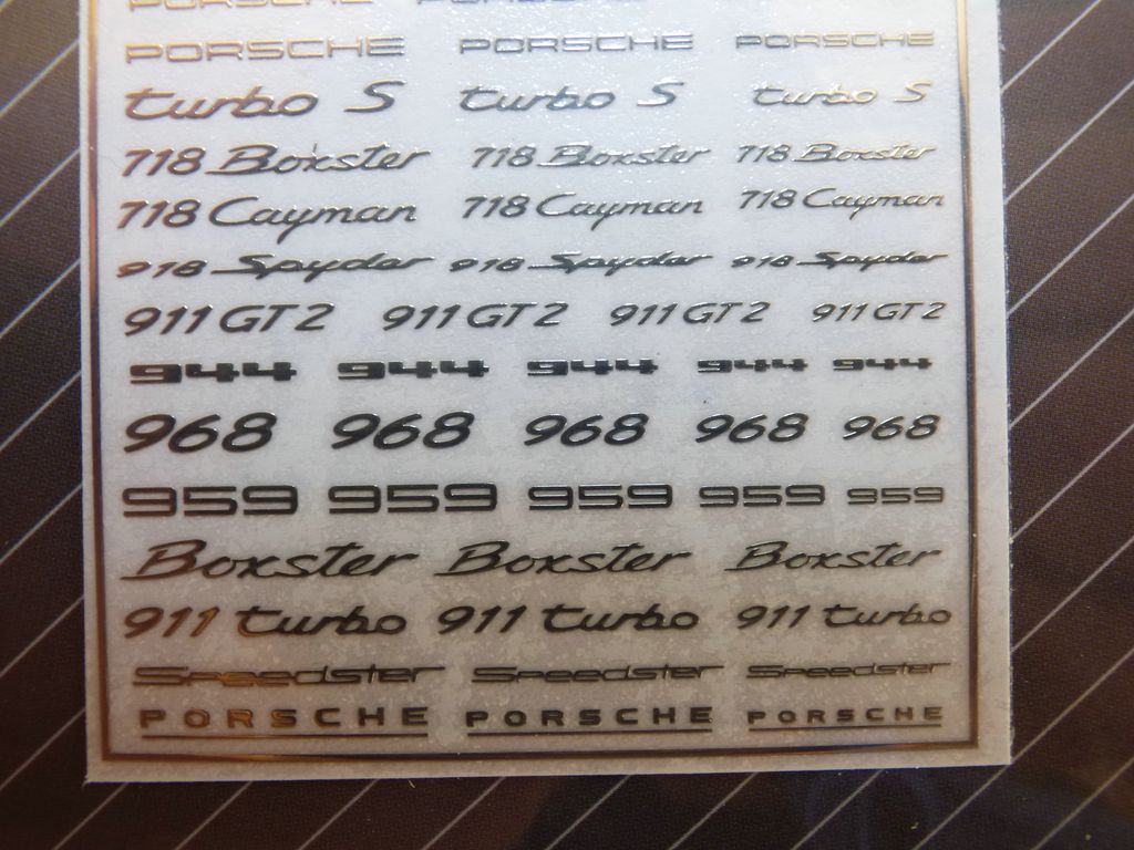 Set de stickers logo en métal PORSCHE - Carrera - Turbo S - 718 Boxster - 718 Cayman - 918 Spyder - 911 GT2 - 944 - 968 - Boxster - 911 Turbo - Speedster -