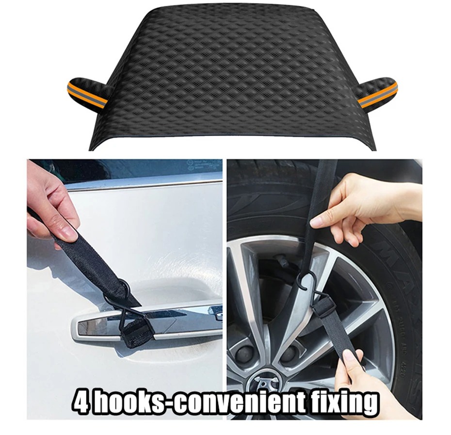 Safety Design: We added the anti-theft buckle to prevent the Car Snow Cover from being stolen, and also prevent the rain from entering the car. The covers of the rear mirrors are equipped with a safety reflective strip which can prevent accidents at night