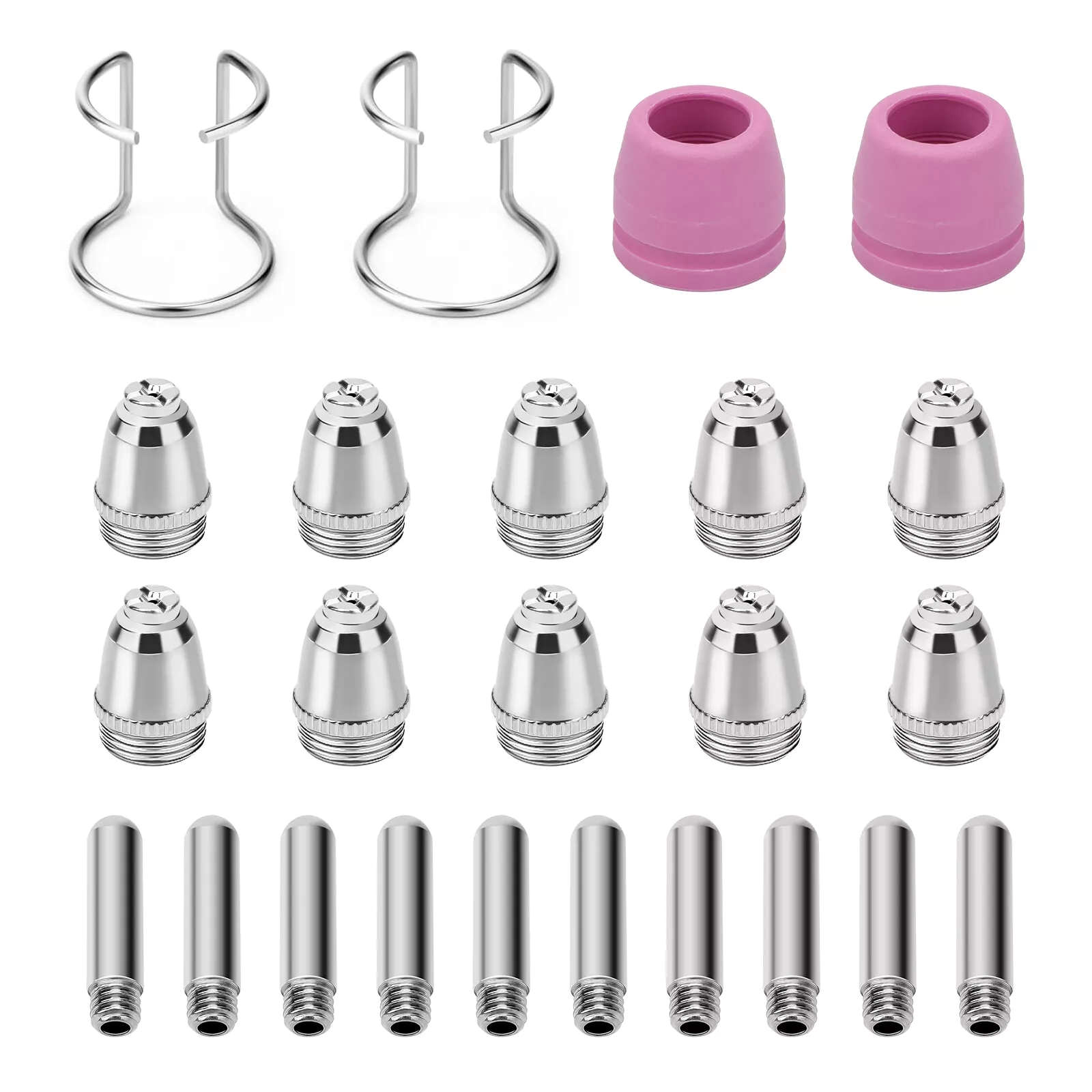 24PCS Complete Kit, Includes Nozzles, Electrodes, Shield Cups, and Brackets, keep your cutting machine running at peak performance.