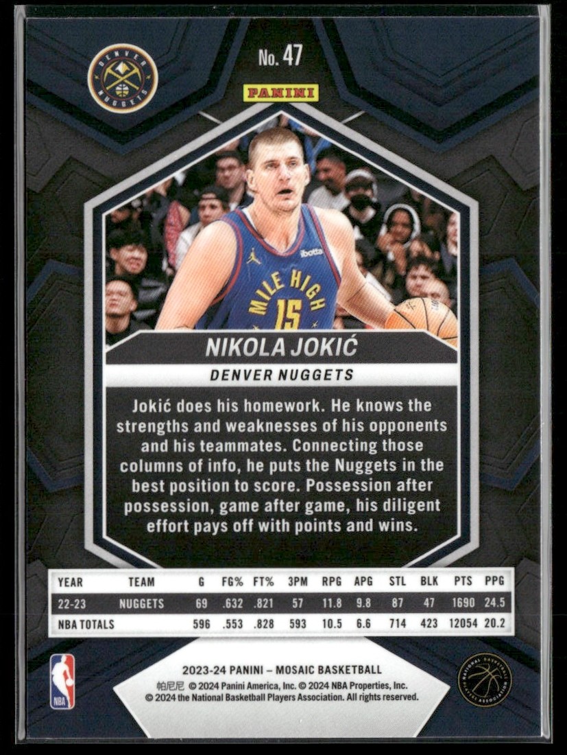 | 2023-24 PANINI MOSAIC NIKOLA JOKIC DENVER NUGGETS #47 |